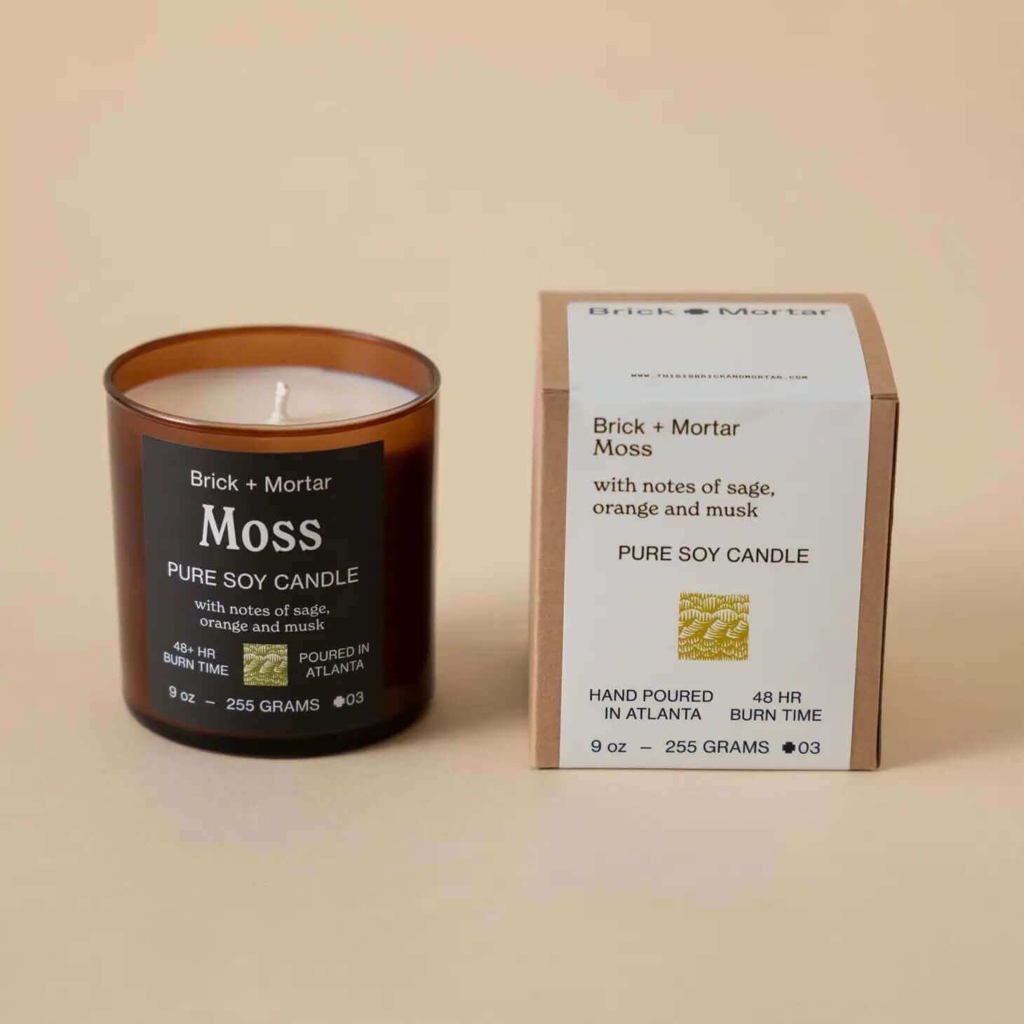Brick + Mortar candles are made from pure soy wax with a blend of essential and fragrance oils. They are hand poured into glass containers and packaged in a 100% recyclable kraft box. We love that all the ingredients are non-toxic, i.e., phthalate free oils and fragrances and lead free wicks. They are handmade in Atlanta, Georgia and produced via a jobs program with City of Refuge.