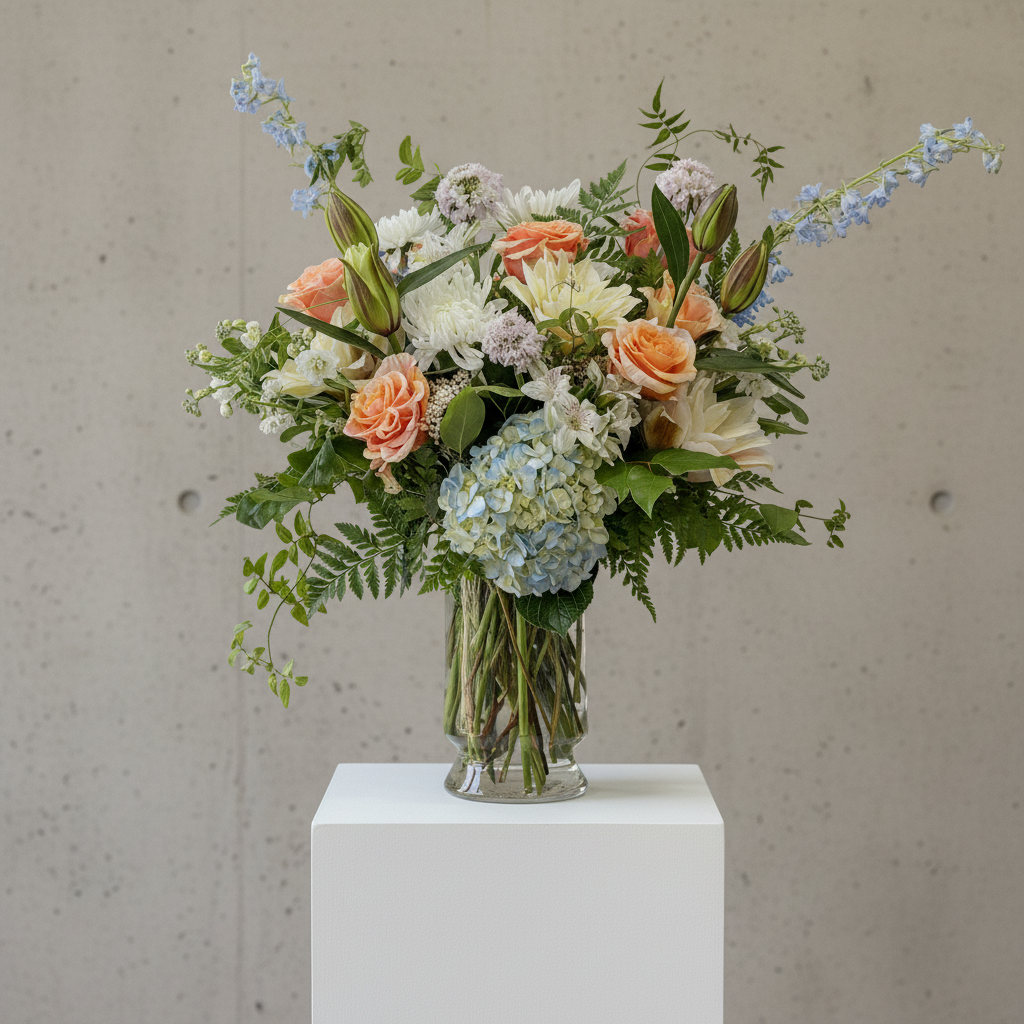 Get ready to be charmed with a delightful flower arrangement in a soft and soothing color palette, typically consisting of pastels or muted colors. Our expert florists will handpick the freshest and most beautiful flowers, making each arrangement unique and one-of-a-kind. Let us surprise you with a touch of surprise and beauty.