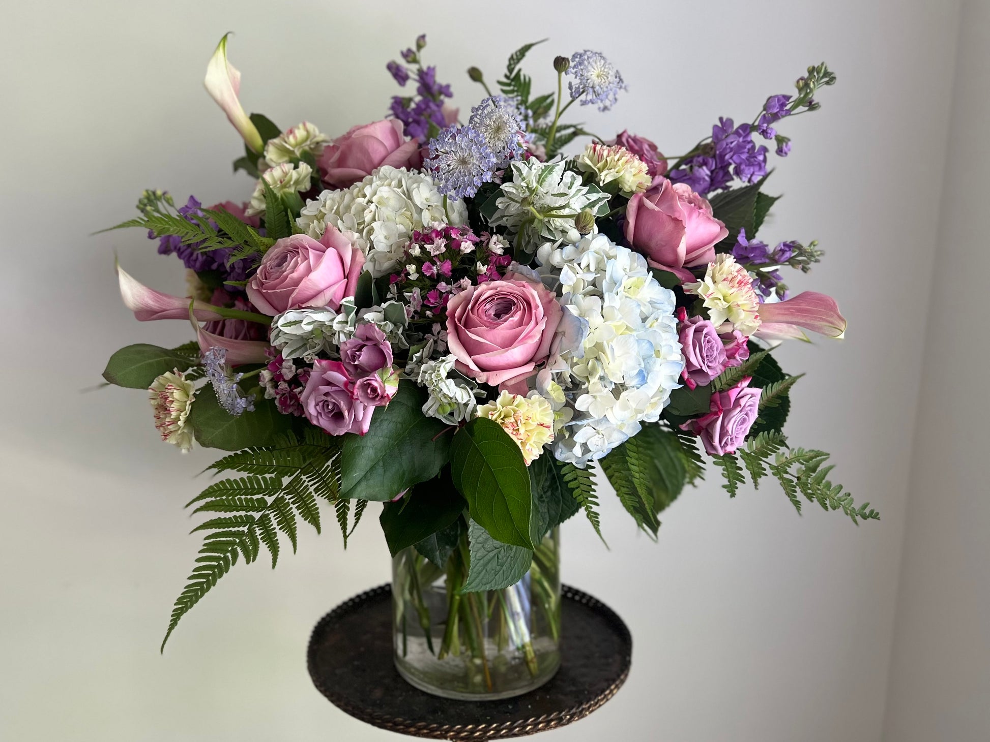 All arrangements are unique and vary based on seasonality and availability of flowers. Photos shown are examples only, and no two arrangements are the same.